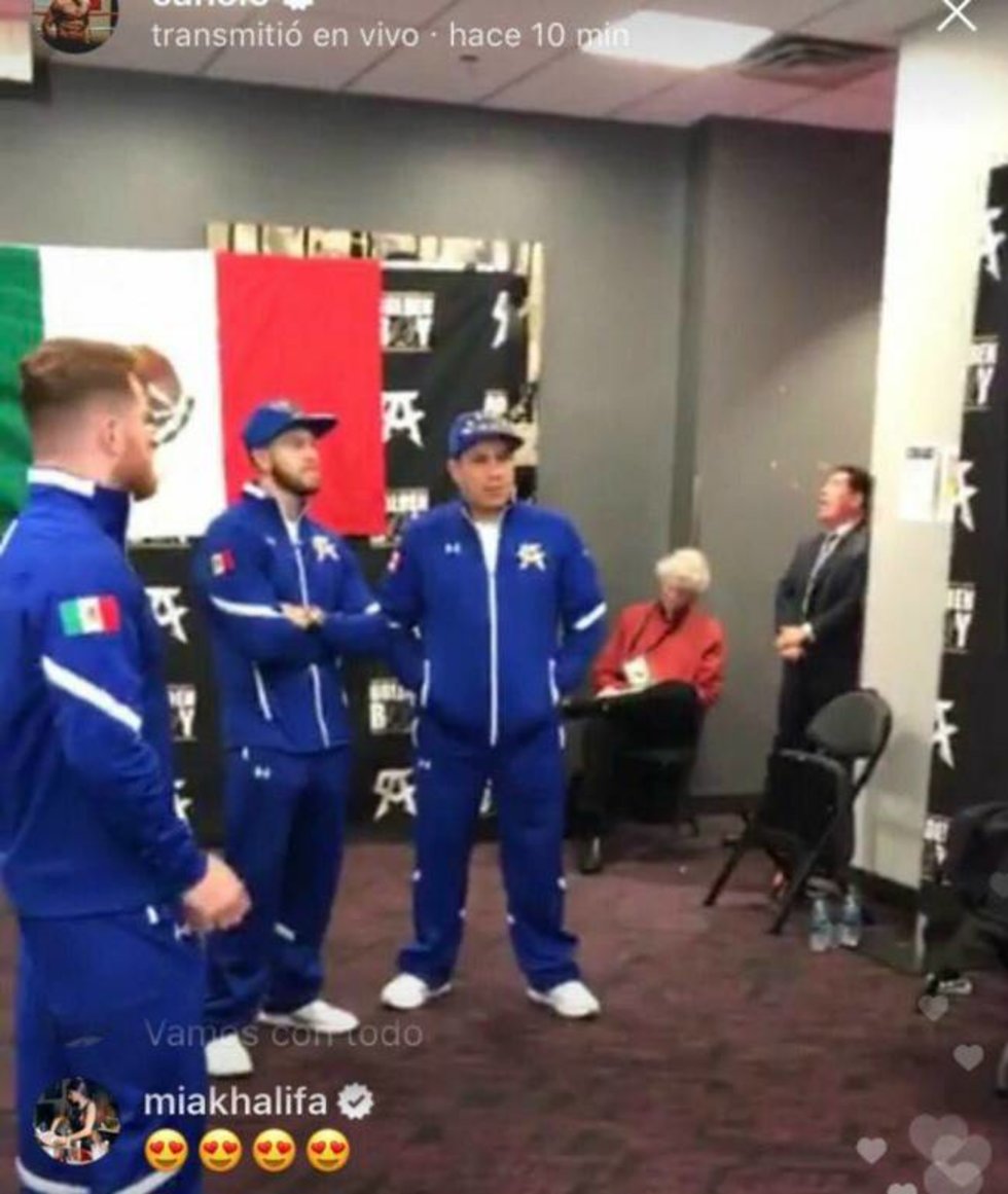 Pero la cosa no paró ahí. Cuando el "Canelo" comenzó su transmisión en vivo de su calentamiento antes de subir al cuadrilátero, Khalifa le dejó un emoji de los ojos del corazón cuando salió el mexicano.