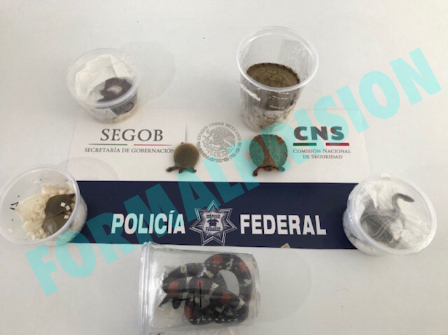 La Policía Federal aseguró en el Aeropuerto Internacional de Mérida boas y tortugas en peligro de extinción.