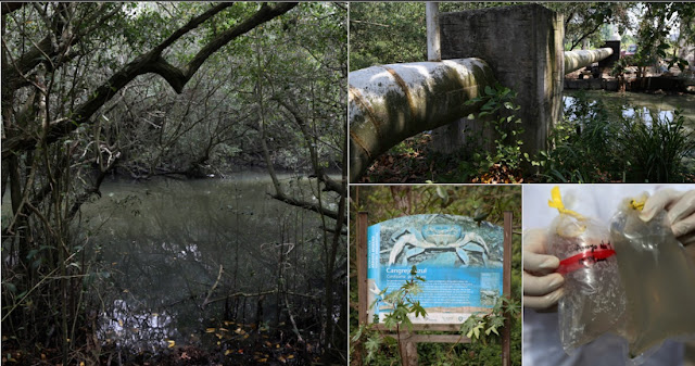 Los manglares interactúan con el agua de diversas formas. En principio, almacenan agua que puede infiltrarse para recargar el acuífero. Bajo sus raíces se inmoviliza una gran cantidad de materia orgánica y sedimentos, debido a lo cual se constituyen como filtro biológico que atrapa todo tipo de contaminantes como aceites, metales pesados, compuestos utilizados en fertilizantes o plaguicidas del agua de los ríos, antes de que contaminen el mar u otros cuerpos de agua.